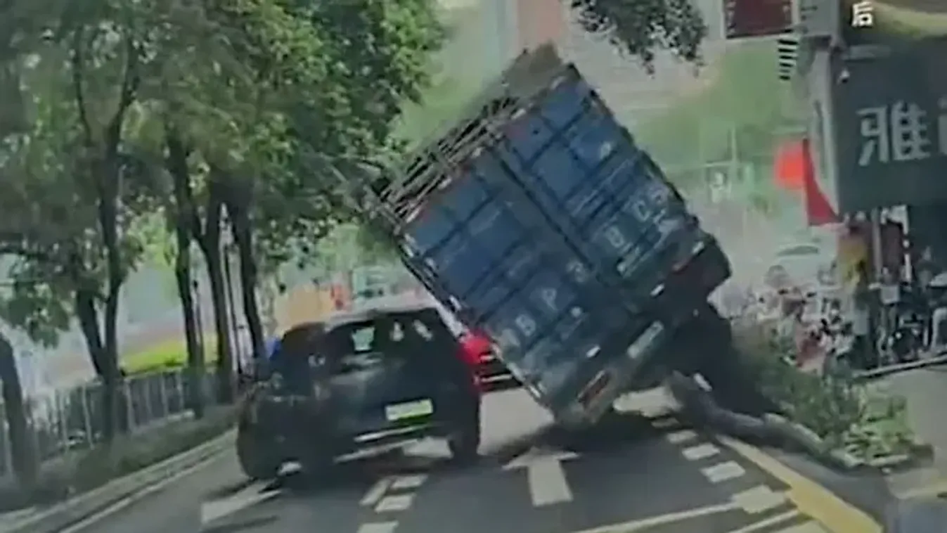 Igazából nem világos, mire gondolt a megpakolt teherautó sofőrje, amikor jobbról próbálta kikerülni az előtte totojázó autóst, merthogy ott tornyosult egy növényekkel beültetett elválasztó-sziget, ami meg is billentette a járművét. Kis híján borulás lett belőle, de a sofőr jókor és jó irányba ellenkormányzott, így mindenki mehetett a dolgára.